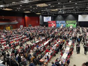 Jeder Teilnehmer musste sehr viele Partien bestreiten, um sich für den 2. Tag zu qualifizieren. Ein Freund von mir, mit dem ich auch schon tolle Deals abgewickelt habe, hat selber auch am Turnier teil genommen und musste leider nach dem ersten Tag bereits abreisen. Er erzählte mir von guten ersten 2 Partien, dann jedoch machte er in der folgenden Partie einen fatalen Fehler, indem er die Ability seines Pokemon nicht nutzte um alle bisherigen Schadenspunkte zu entfernen. An Tag 2 hat man direkt eine andere Atmosphäre gespürt. Es waren so viele Teilnehmer von der Weltmeisterschaft in London vor Ort, das war richtig respekt einflößend und einfach super spannend zu zu schauen.