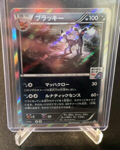 Ich glaube kaum eine meiner neuen Trophy Karten hat soviel Resonanz erzeugt wie diese Trophy. Kaum nachdem ich sie gepostet habe, gab es zahllose Anfragen was das für eine Karte sei, ob ich sie direkt Raw verkaufen möchte, was die Geschichte dahinter ist und und und. Dieser Kauf war rein aus dem Bauchgefühl heraus. Für diese Karte gibt es so gut wie keine Sales Daten. Die Angebote auf eBay für über 10k€ sind eher zur Präsentation gedacht und die letzten Sales von 2019 für 79 Dollar ( :‘) ) sind auch eher kosmetik. Diese Karte wurde nur im Monat Juni 2015 während des Blacky Night Battle in Japan ausgegeben. Hierbei hatte jedes Pokemon Center zwischen 2 und 3 Events in diesem Monat und nur der Gewinner des Events hat diese Karte als Trophäe bekommen. Anbei ein Screenshot vom Pokemon Center Fukuoka: